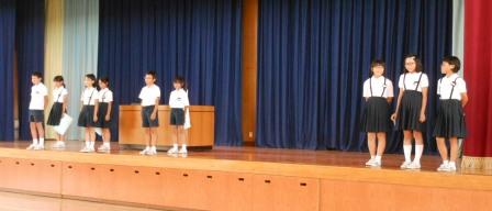 そして,4年生による「せいのび」の群読,全校群読と毎日の学級での取り組みの成果を発表しました。6月の学校生活にがんばろうという気持ちが伝わっていきました。