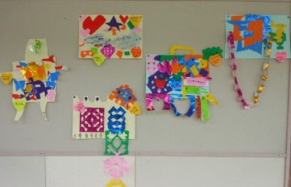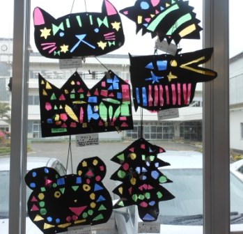 低学年棟の廊下には,1,2年生の図工作品が展示されています。