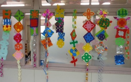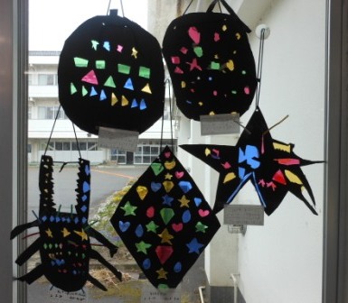慣れないはさみやカッターを駆使して,涼しげな作品を作り上げています。