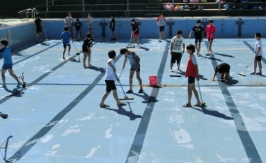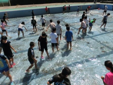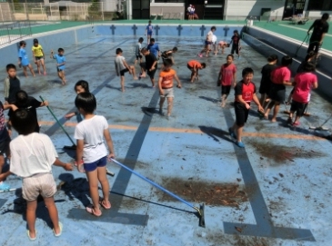 だんだんきれいになっていくプールに,今年の水泳練習へのがんばりを誓いました。