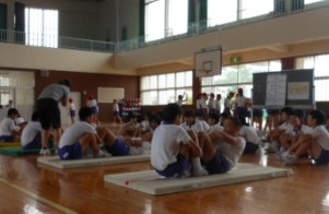 4年生以上が,①握力 ②上体起こし ③長座体前屈 ④反復横とび ⑤50M走 ⑥立ち幅跳び ⑦ソフトボール投げ ⑧シャトルラン の測定をしました。