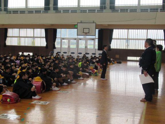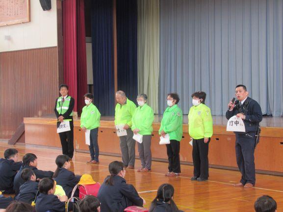 児童の登下校時の安全を見守ってくださっている「安全パトロール隊」の方々の紹介式を行いました。隊長の北村さんからは「地域の安全のためには,いつでも大きな声で挨拶を交わすことが大切」とのお話がありました。いつもありがとうございます。