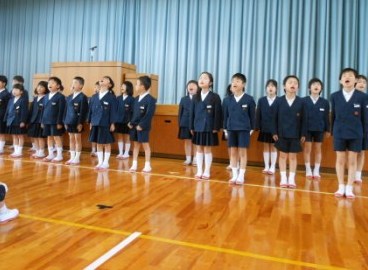 今日から運動会練習が始まりました。気温がやや低い中,元気に入退場の練習をしました。初めての1年生は,6年生にいろいろ教えてもらいながら行進しました。また,今年の運動会テーマ看板『笑顔・団結・底力で輝く鳥屋っ子』の披露がありました。