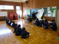 6年生が総合的な学習の時間に自分の住む地区の防災マップを作成しました。完成した防災マップを地区の下級生に紹介しました。紹介後,下級生は「どこに逃げたらいいのか分かった」「事前に確認しておくことの大切さに気付くことができた」など感想を6年生に伝えていました。