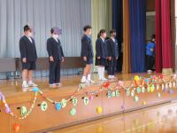 6年生に感謝を伝えるために,各学年が出し物を披露しました。事前に掲示物,プレゼントなどを準備し,当日は,6年生に楽しんでもらうことができました。6年生も運動会で披露した「よさこい」を踊り,5年生に鳴子を渡し,「これからの鳥屋小学校をよろしくお願いします」という思いを伝えました。