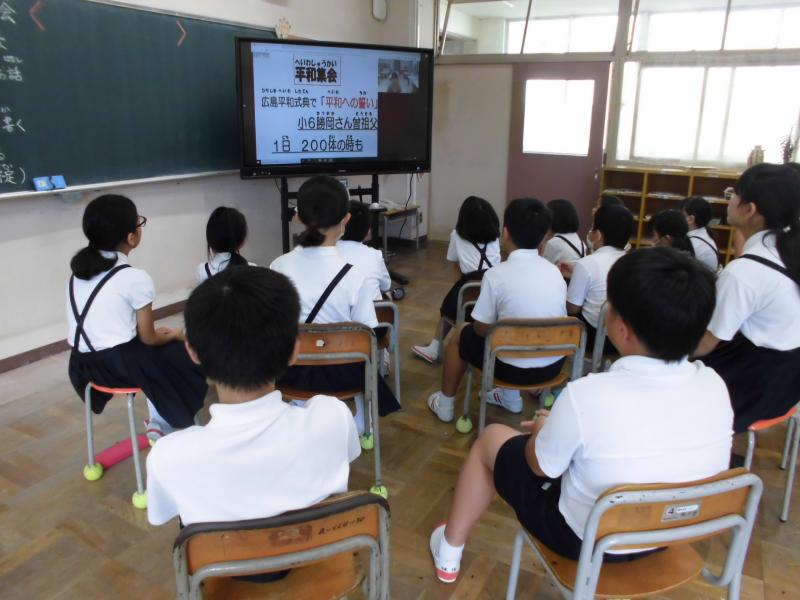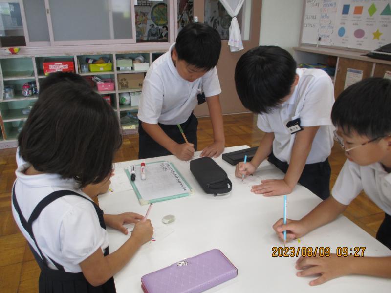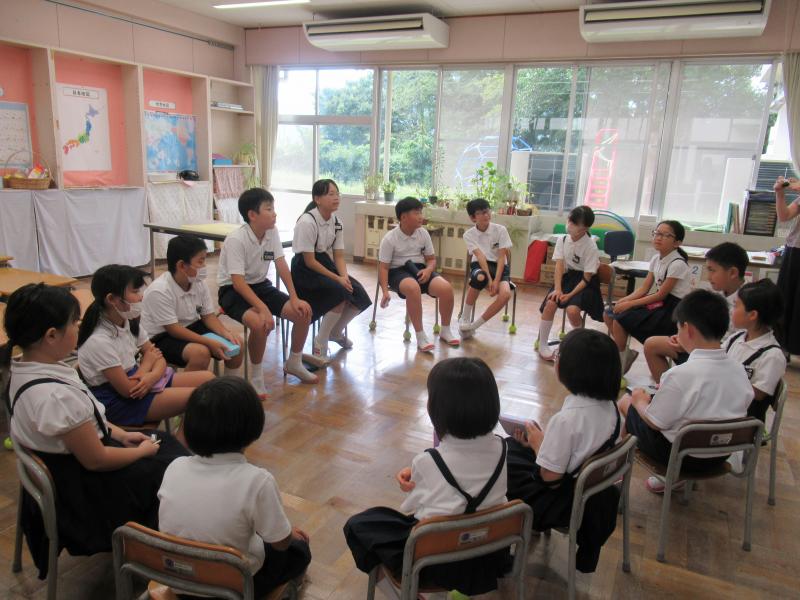 8月9日,久しぶりの学校への登校で,平和集会が行われました。校長先生のお話の後,縦割り班で「みんなで仲良くするにはどうすればいいか」について話し合いました。子ども達には,今後も毎年平和集会を行う意味や,身近な平和について考えてほしいと思います。