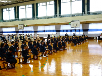4月7日に50名の新1年生が入学しました。1年生は呼名に対し,元気な声で返事をすることができました。また,お祝いの言葉を伝えた代表の2年生には,1年生を支えるお兄さんお姉さんらしい頼もしさを感じました。