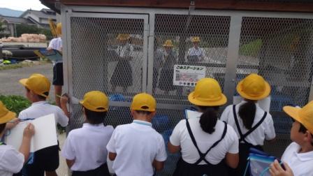 4年生が社会科で,ゴミについての勉強をしています。近くのごみステーションうを見学して,ゴミ出しのルールについて考えました。なぜ,ゴミ出しのルールがあるのかを課題に,グループ学習,学び合い学習をしました。様々な意見が出てきました。最後に,役場環境課の職員の方からお話を聞いて,自分たちの考えをさらに深めることができました。