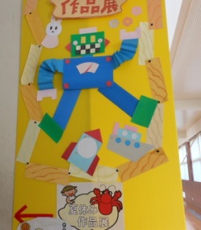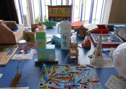 夏休み作品展が始まりました。大きな案内板に従って体育館の2階に上がると・・・。学年ごとの展示ブースに工作,手芸,科学作品,調べ物・・・が所狭しと並んでいます。夏休みにがんばった足跡が見て取れる力作ばかりです。