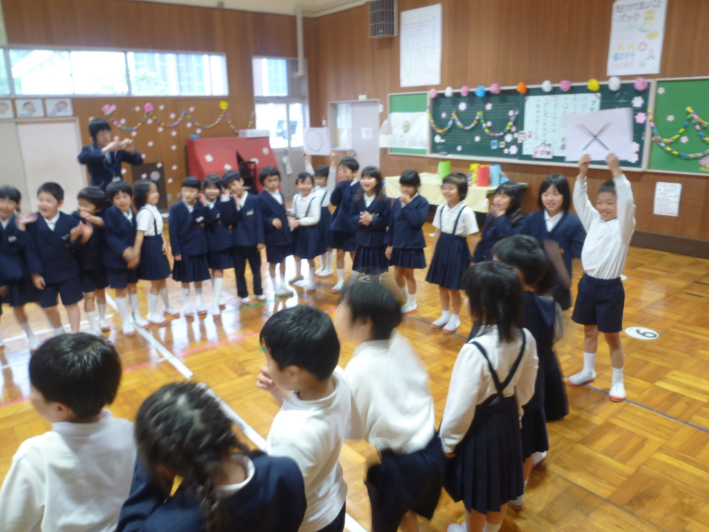 少しお兄さんお姉さんになった2年生!1年生と仲良くなることをめあてにお互いに自己紹介をしたりゲームをしたりして楽しみました。