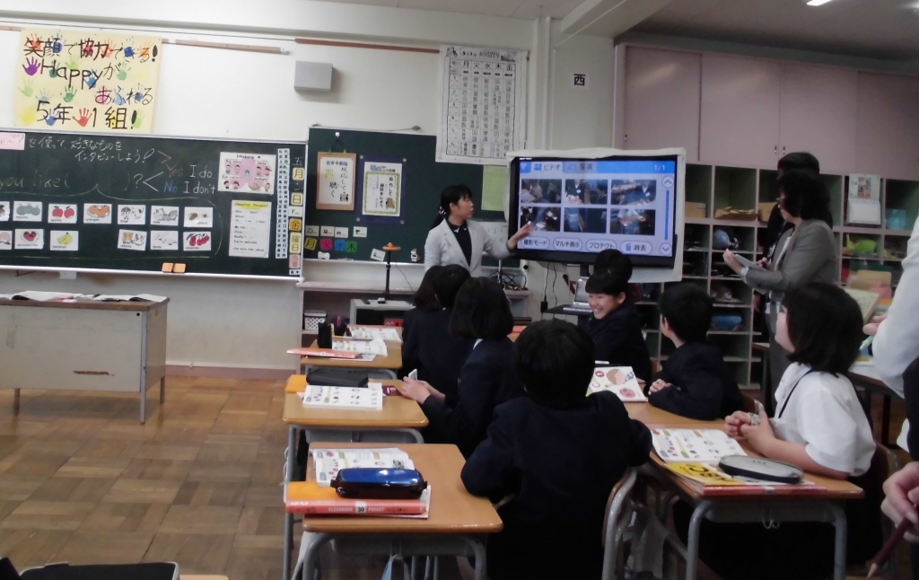 昨年度から英語に親しんでいる5年生。"Do you like ~?" "Yes,I do. No,I'dont."と 英語で友だちの好きなものを楽しみながら尋ねていました。