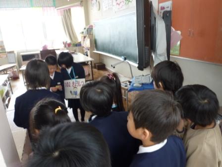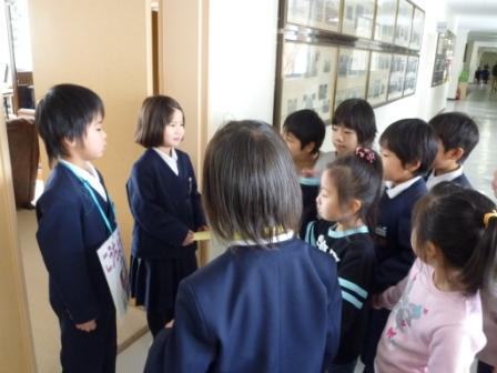 学校案内では、1年生が保育園の子ども達を連れて学校の中を案内しました。「こっちだよ。」と優しく手をひく1年生は頼もしく見えました。何よりも保育園の子ども達が楽しんでくれたことが嬉しかったようです。