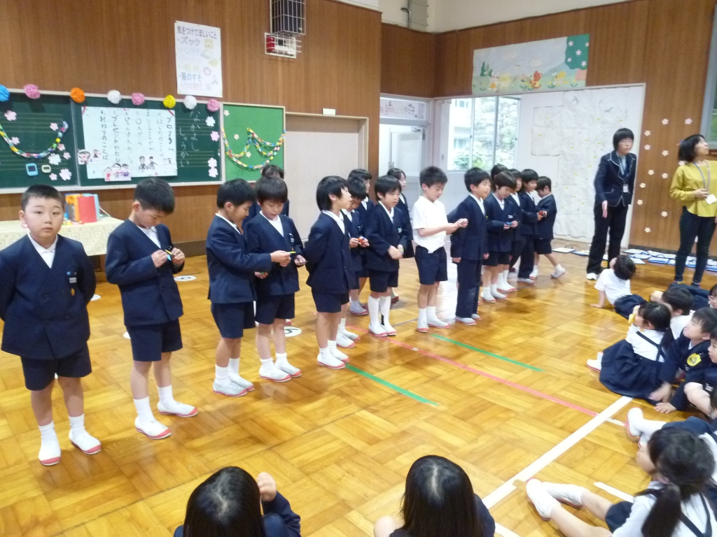 少しお兄さんお姉さんになった2年生!1年生と仲良くなることをめあてにお互いに自己紹介をしたりゲームをしたりして楽しみました。