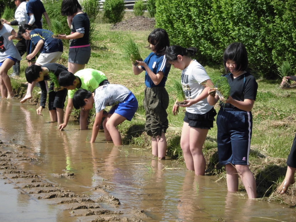 今年度も農事法人やまびこさん,JA能登わかばさんのご協力により,総合的な学習の時間に田植え体験を行うことができました。手植えの仕方を教わった後,それぞれに苗を持ち,田んぼの感触に歓声を上げながら田植えがスタート!!