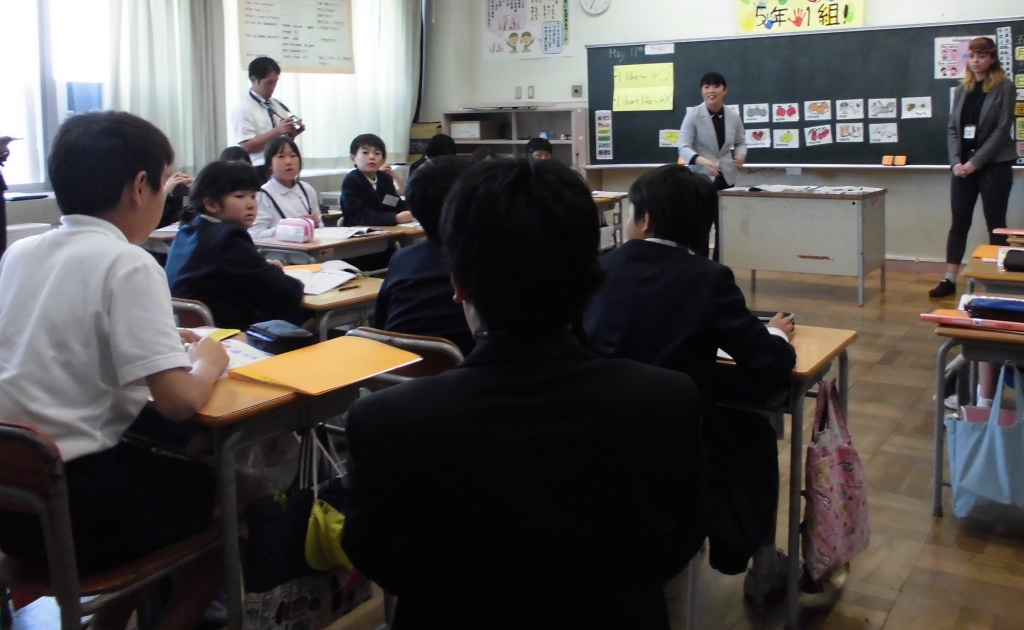 昨年度から英語に親しんでいる5年生。"Do you like ~?" "Yes,I do. No,I'dont."と 英語で友だちの好きなものを楽しみながら尋ねていました。