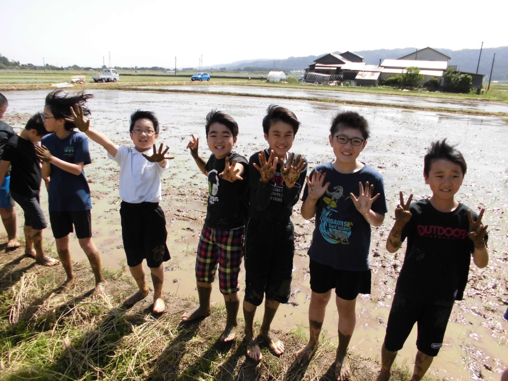 今年度も農事法人やまびこさん,JA能登わかばさんのご協力により,総合的な学習の時間に田植え体験を行うことができました。手植えの仕方を教わった後,それぞれに苗を持ち,田んぼの感触に歓声を上げながら田植えがスタート!!