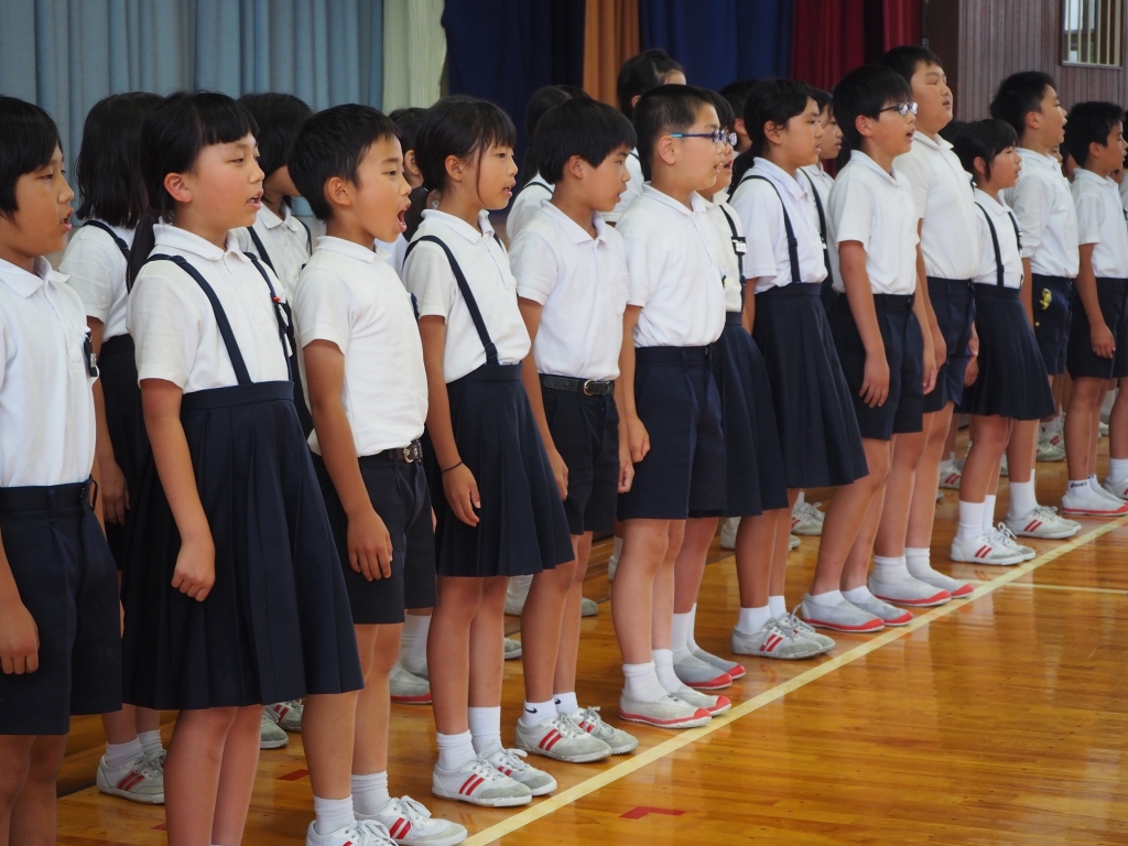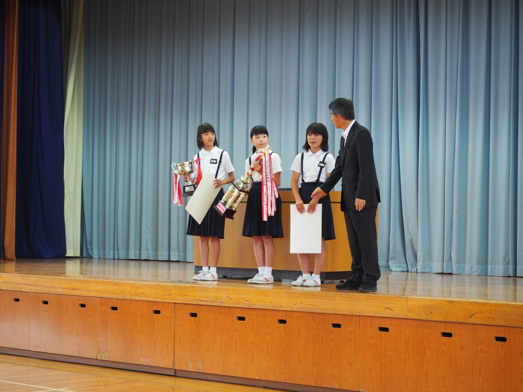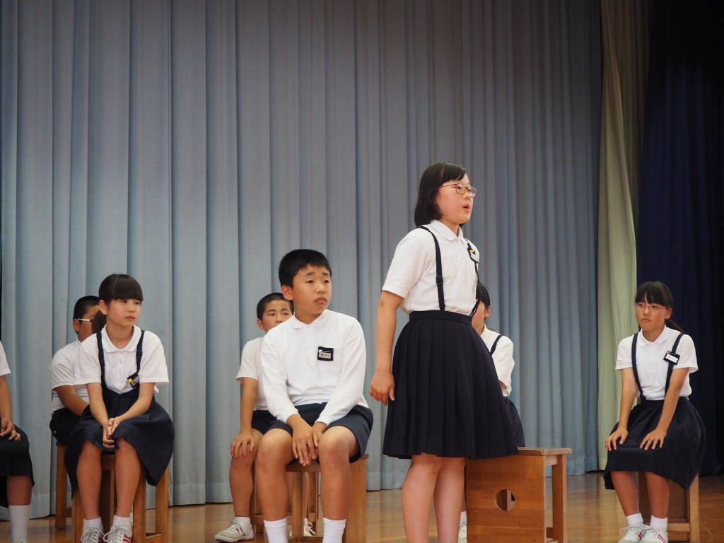 全校集会では,そろばん石川県一位・陸上の県体出場の表彰がありました。児童集会では,代表委員会はあいさつ運動の取組,6年生は花まる勉強の劇を発表しました。