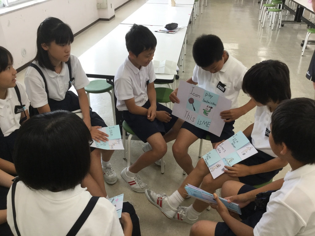 「can」を使った「This is ME!」の自己紹介カードを作り,2クラスで交流を行いました。