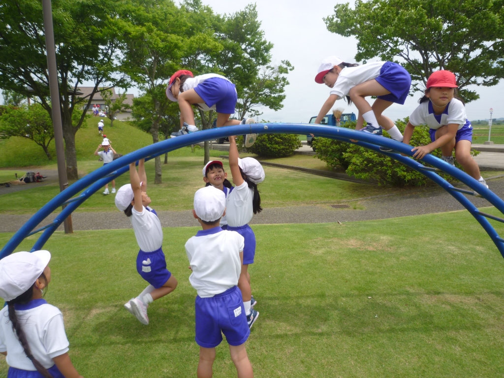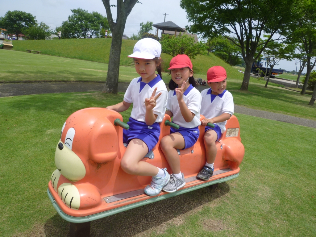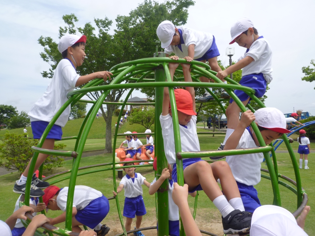 1年生は,生活科「なつだ あそぼう」の学習で,梅の里公園へ行ってきました。遊具の使い方やマナーを確認してから,遊びがスタート!草の上を転がったり,元気いっぱい走り回ったり,パワー全開で遊ぶことができました。