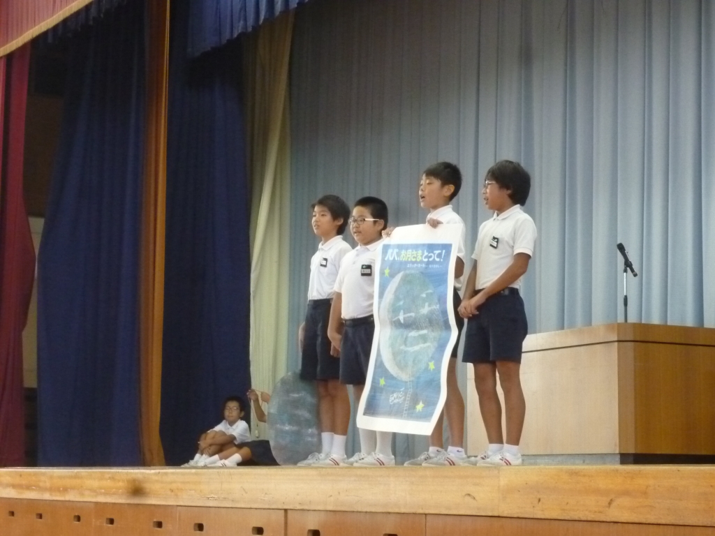 3つのグループがお勧めの本を紹介し,よかったグループを拍手の大きさで判断するというものでした。本に関する劇を交えるなど,楽しく上手に本の紹介をしてくれました。