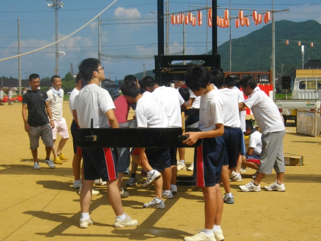 祭典に使うテントや骨組みは、小学校や公民館などから借りてきます。
