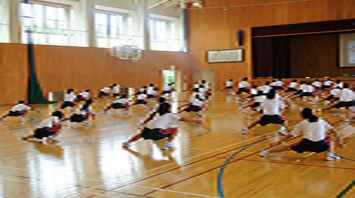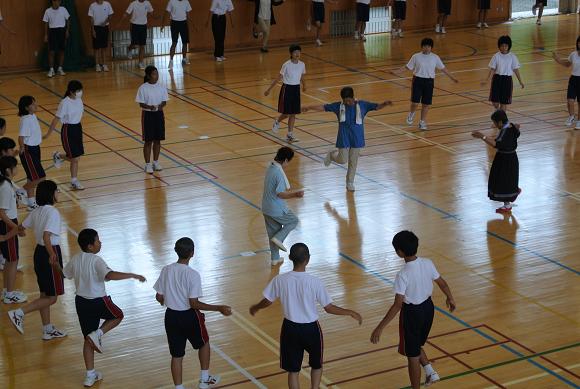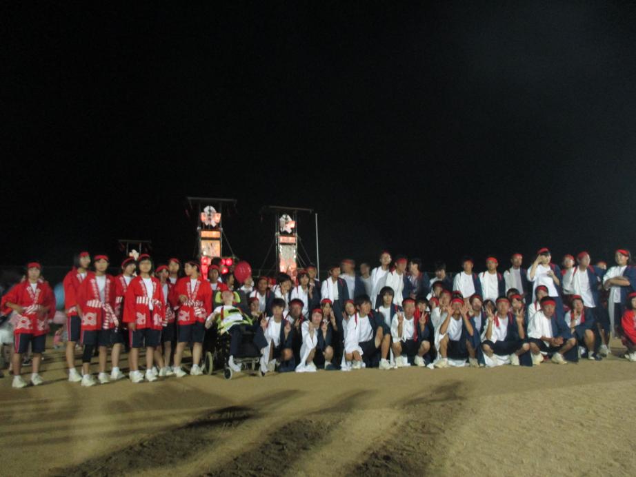 この踊りは当日、舞台のまわりを中学生が囲み、
