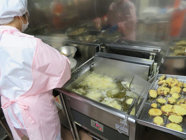 今日の給食は、たくさんさつまいもをいただいたので、さつまいもの天ぷらを