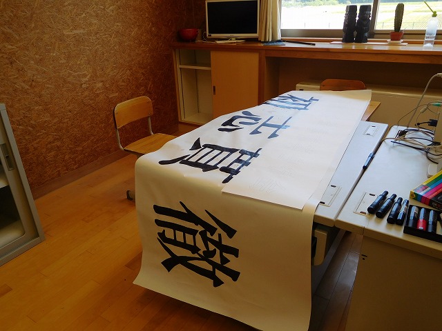 生徒玄関の後期生徒会のスローガンが完成しました。