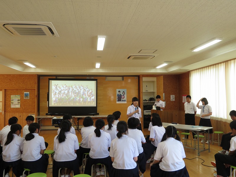 生徒会執行部によるスローガンの募集、部門についてなどのお話しがありました。