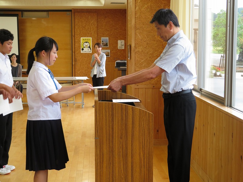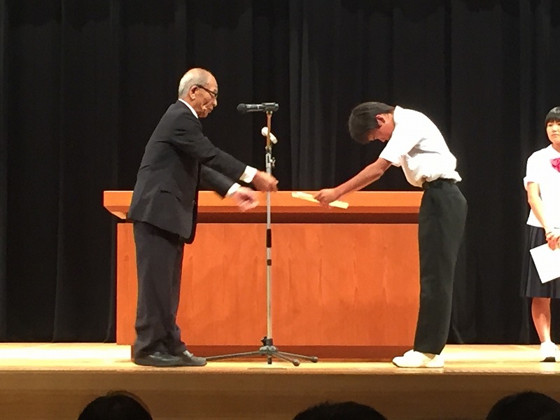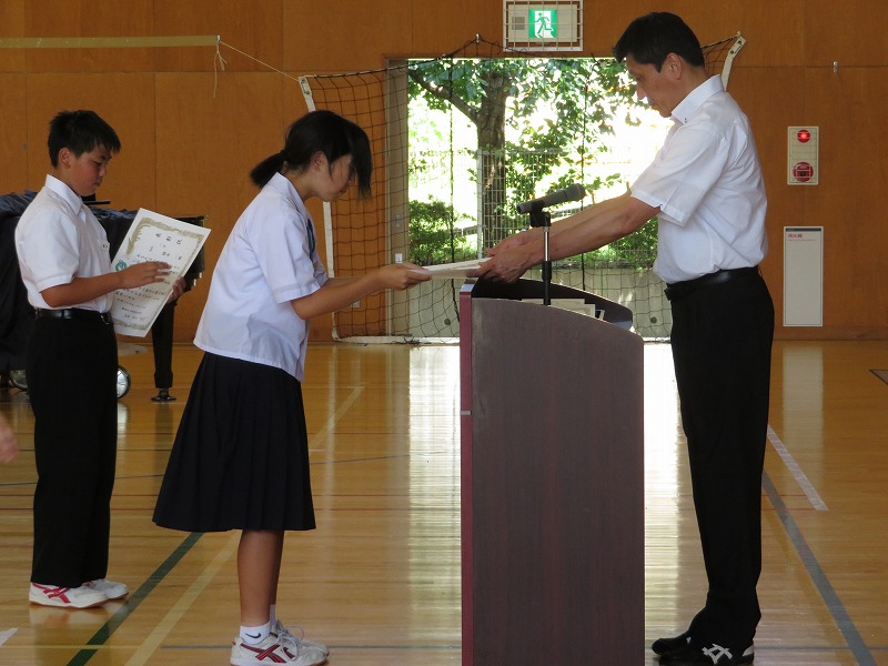 テストの成績優秀者や応募作品の入賞者の表彰式を行いました。