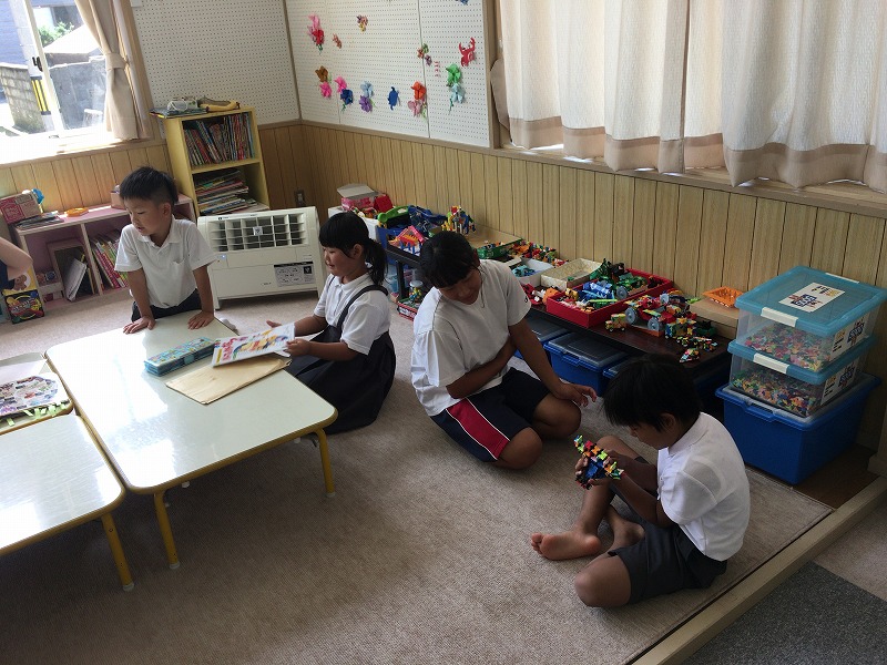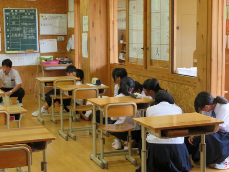 サイレンの指示に従い、窓やカーテンを閉めて待避行動を取った後、体育館に集合しました。