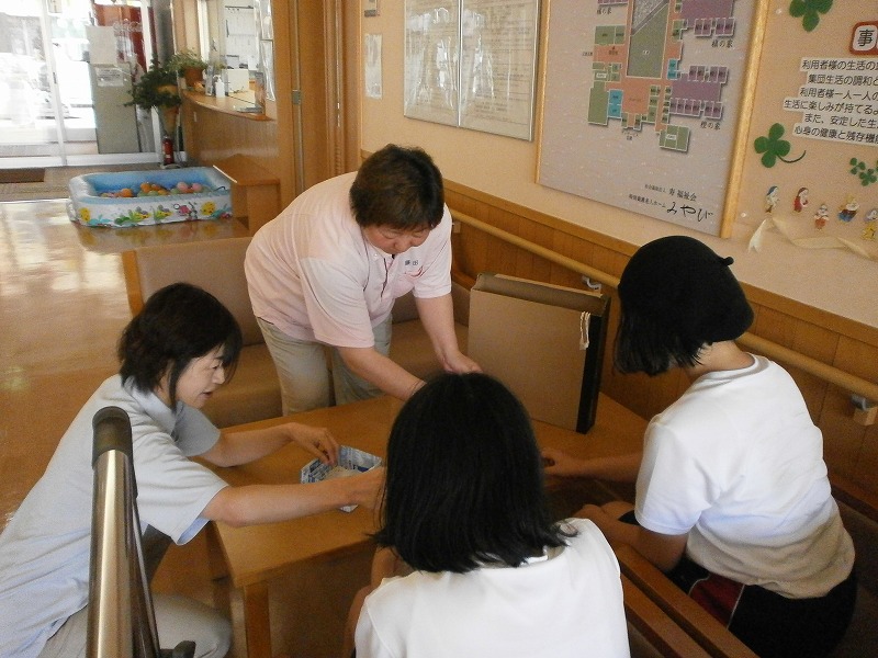 文化部の生徒2名が老人ホーム「みやび」でボランティア活動をさせていただきました。
