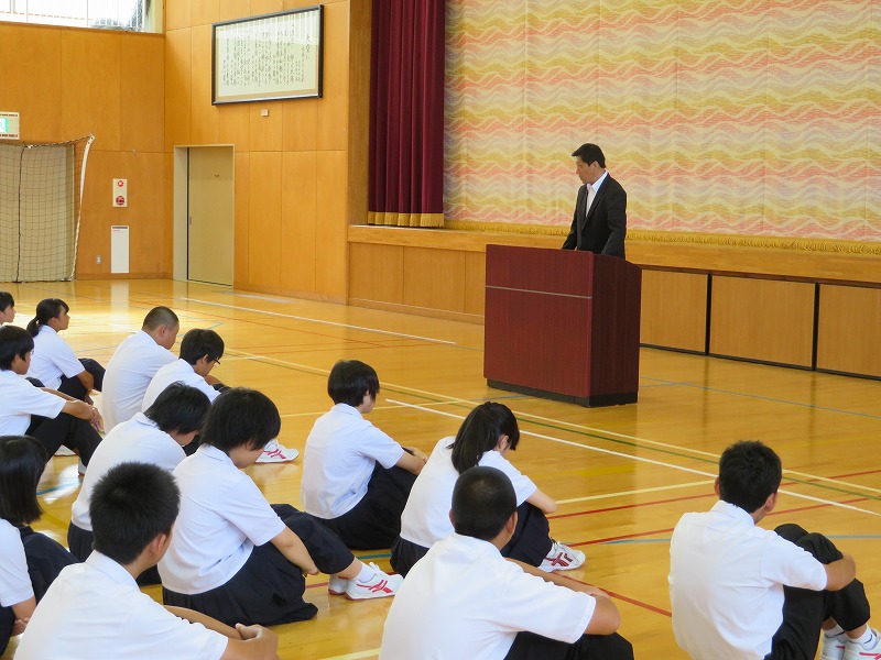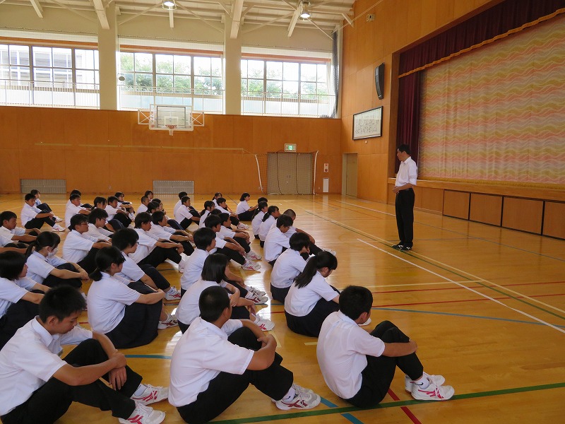 今日は授業参観で、生徒集会・部活動を参観していただきました。