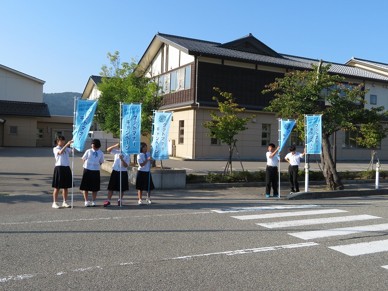 朝、生徒玄関前と夕方にもとやスーパーで行いました。