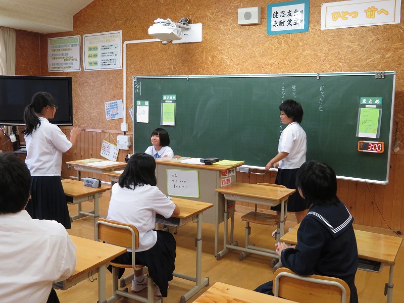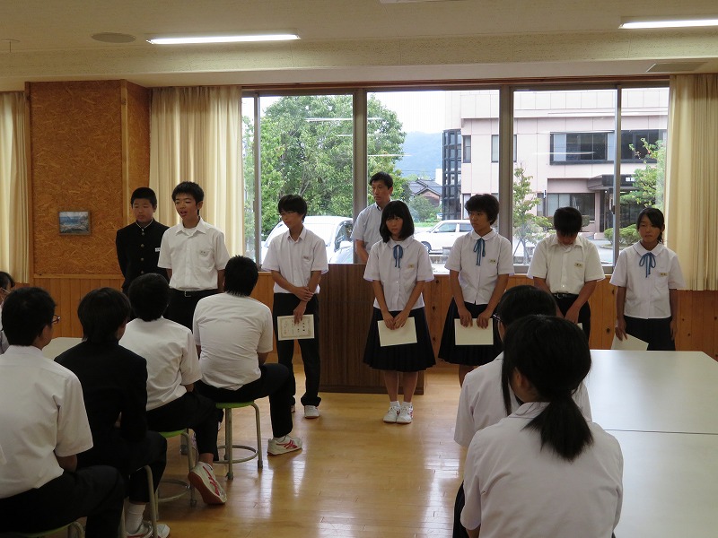 意見発表では、吉野さんが部活動から学んだことについて、大田さんが将来の夢に