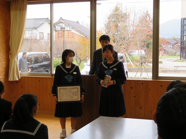 また、2年生の朝川さんが優秀賞を受賞しました。