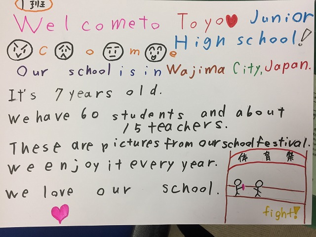 一年生が英語の時間に、「ウェブサイトを作る」単元で、東陽中学校の