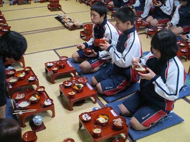 一年生が総合の時間にまつり御膳を作り、会食しました。
