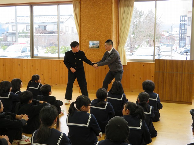 警察の方に不審者と遭遇した際の護身術を教えていただきました。