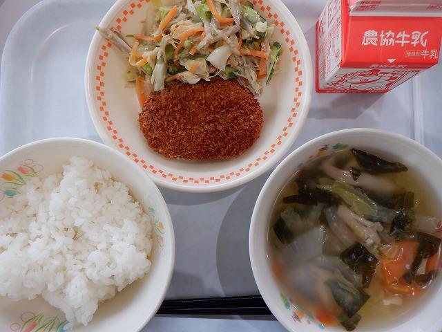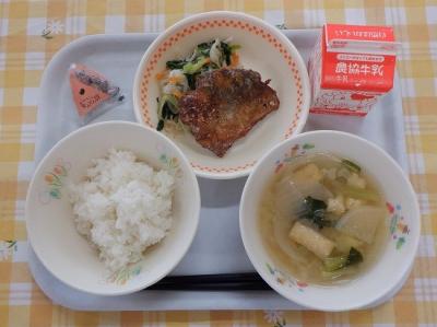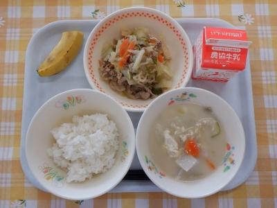 ・具だくさん汁(豚肉・こんにゃく・にんじん・大根・たまねぎ・はくさい・ごぼう・ねぎ入りです。豚汁よりもさらに具が多く、名前通り、たくさんの野菜が入って食物繊維と噛み応え充分の汁物でした。)