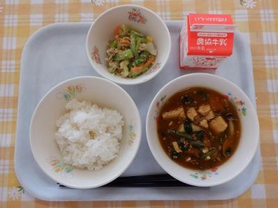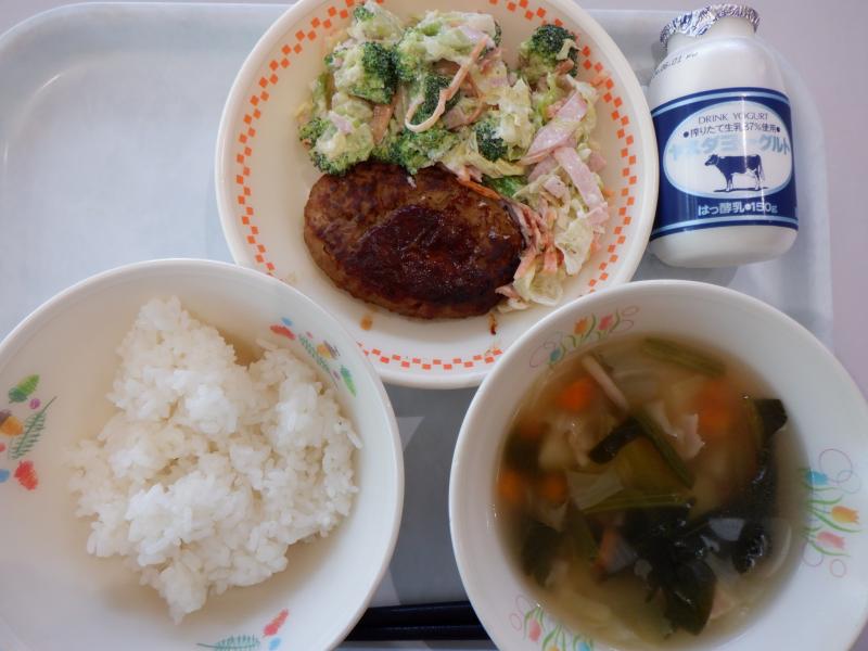 ・アスパラガスのごま和え(町野産アスパラガスをたくさん使いました。今月の中では一番アスパラガスの量が多くなっています。油と相性のよい野菜なので、シーチキンをあわせました。シャキシャキの歯ごたえで美味しかったです。)