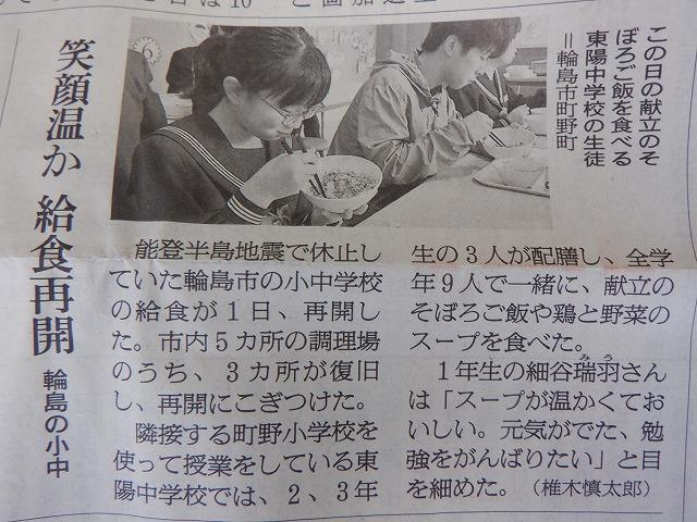 JA能登さんから「能登牛」を提供して頂き、1学期最後の給食となりました。肉質が柔らかく、脂がのった能登牛を堪能させていただきました。ありがとうございました。栄養バランスも考慮し、すいか以外は献立変更をしました。「ゆかり和え」はしそ風味でさっぱりと、すまし汁は、豆腐・ごぼう・人参・小松菜・椎茸・わかめを入れました。すいかは、羽咋産の「能登すいか」で、とても甘かったです。