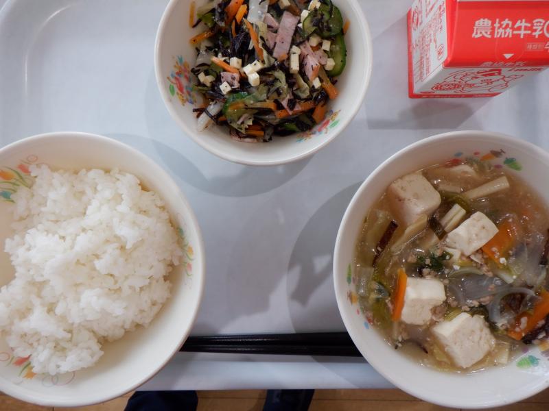 ・ひじきの炒め煮(1学期は、油揚げ入りでしたが、今回は、大豆・さつま揚げ・こんにゃく・さやいんげん入りです。食材をたくさん入れました。)