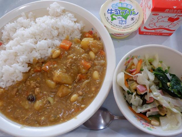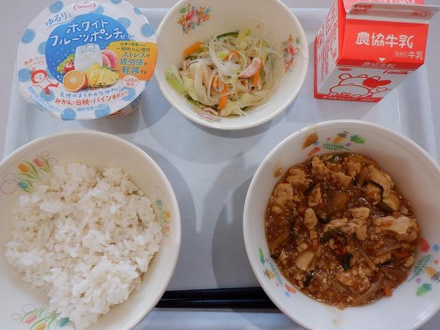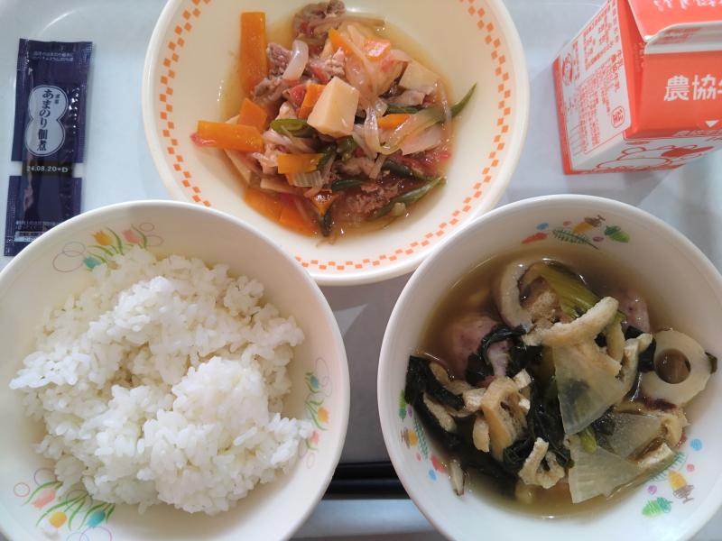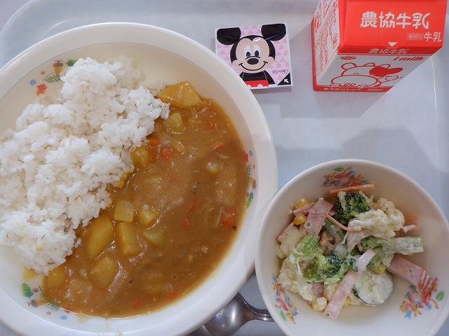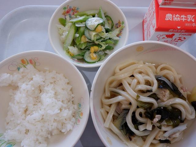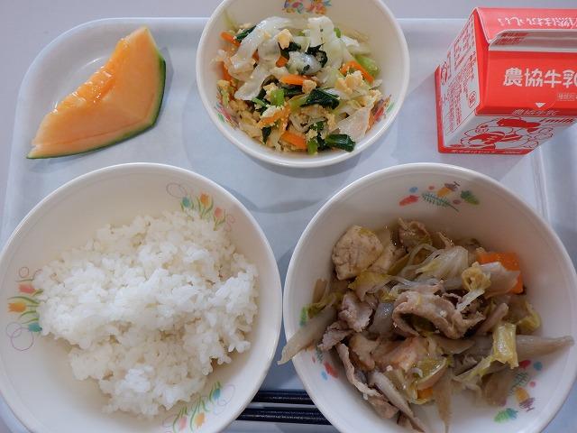 今日の献立は野菜をたくさん入れています。今月最後は比較的涼しい1日で終わりますね。来月で1学期も終わります。暑さに負けずに、食欲を保ちたいところです。