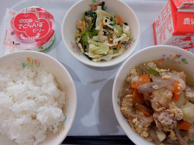・ももゼリー (支援物資でいただきました。食物繊維も強化されていて、100g入りです。来月の給食にも登場します。)