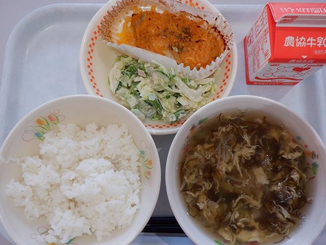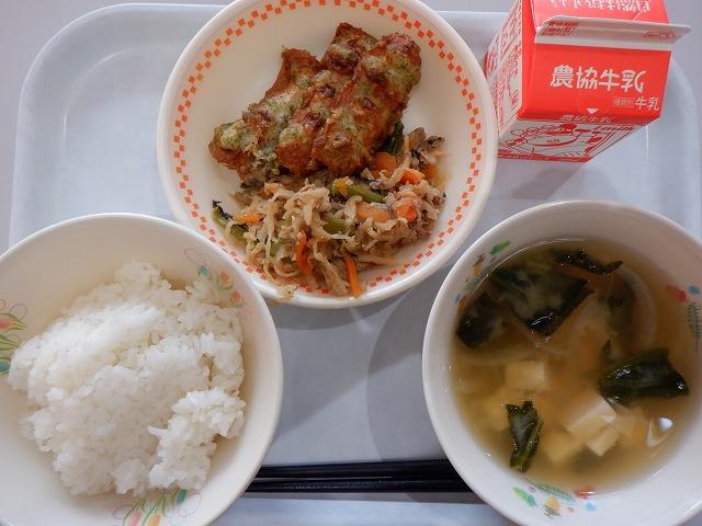 食物繊維、カルシウム、鉄分を意識した献立です。湿度が高くなっている毎日ですね。1学期も残り20回未満になりました。期末テストに向けて頑張りましょう。明日は今月2回目のうどんです。お楽しみに!