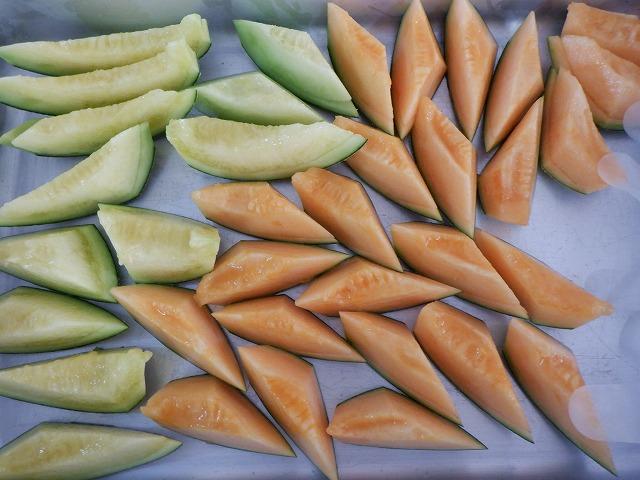 茨城県産メロンを頂きました。茨城県は、全国一のメロン生産量を誇る一大産地です。本日は5玉を小・中学校でカットして頂きました。赤肉・青肉メロンを中学生に青肉メロンを小学生に提供しました。もう一回提供できるので、次回は、小学生に赤肉・青肉メロンを提供する予定です。今年初めてのメロンは、香りが高くとても甘かったです。ご支援、ありがとうございます。