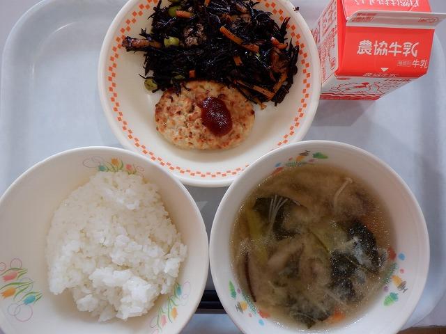 ・ひじきの炒め煮(1学期は、油揚げ入りでしたが、今回は、大豆・さつま揚げ・こんにゃく・さやいんげん入りです。食材をたくさん入れました。)
