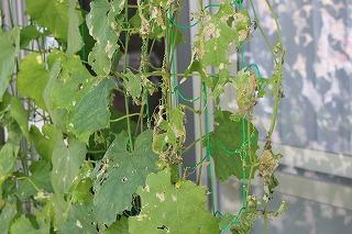<かわいそうな状態のヘチマのグリーンカーテン…>