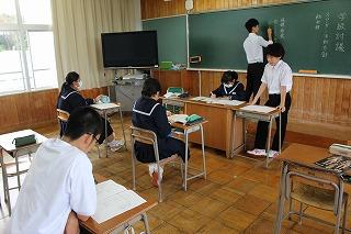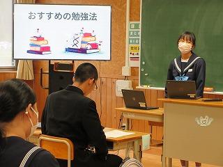 10月16日(水)の生徒総会に向けて、各学年で学級討議が行われました。執行部、保健・給食委員会、図書・環境委員会の資料を見ながら、よりよい学校生活に向けて、生徒は真剣に考えていました。また、柳田中学校で一緒に学校生活を送らせていただいているため、柳田中の生徒の皆さんと一緒に活動できることはないかという視点でも考えていました。